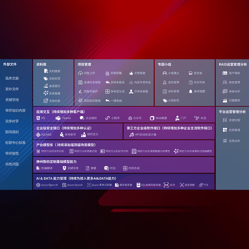 医疗器械产品上市前,,,,要熟悉严格与繁复评审标准,,,,整理分析监管机构指导文件中的海量信息。。。企业急需一个智能化解决方案,,,,提升知识管理效率,,,,提高评审通过率,,以提升其市场竞争力。。